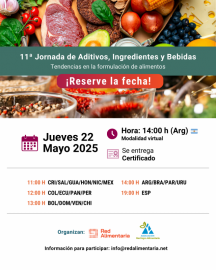 La b&uacute;squeda de nuevos ingredientes y opciones de alimentos que reemplacen el consumo de prote&iacute;nas c&aacute;rnicas, es una tendencia cada vez m&aacute;s creciente. La industria y los desarrolladores lo saben, por lo que desde la investigaci&oacute;n, la innovaci&oacute;n y la tecnolog&iacute;a se encuentran trabajando para responder a esta demanda. Tomando nota de esta necesidad de los consumidores, en la&nbsp;11&ordf; edici&oacute;n de la&nbsp;Jornada de Aditivos, Ingredientes y Bebidas,&nbsp;La Ing. Mariana S&aacute;nchez -Directora de Asistencia Tecnol&oacute;gica en INTI- presentar&aacute; el tema:&nbsp;Prote&iacute;nas alternativas de base biotecnol&oacute;gica. El encuentro, que&nbsp;organiza Red Alimentaria, se realizar&aacute; de manera virtual a trav&eacute;s de la plataforma de YouTube, el d&iacute;a&nbsp;22 de mayo a las 14 horas&nbsp;(horario Argentina). Horarios internacionales: 11:00 AM (Costa Rica, El Salvador, Guatemala, Honduras, Nicaragua, M&eacute;xico) 12:00 PM (Colombia, Ecuador, Panam&aacute;, Per&uacute;) 13:00 PM (Bolivia, Rep&uacute;blica Dominicana, Venezuela) 14:00 PM (Argentina, Brasil, Chile, Paraguay, Uruguay) 19:00 PM (Espa&ntilde;a) La actividad no es arancelada pero requiere&nbsp;inscripci&oacute;n previa&nbsp;completando este formulario:&nbsp;https://forms.gle/Lk5pdpitv8qcN9GKA&nbsp;Se entregar&aacute;n certificados de participaci&oacute;n <p style="text-align:center"> M&aacute;s informaci&oacute;n:&nbsp;info@redalimentaria.com &nbsp; &nbsp;